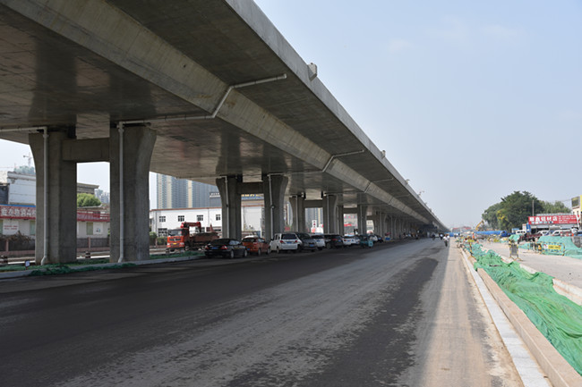 9月8日上午6點(diǎn),伴隨著最后一塊圍擋的拆除,濟(jì)南快速路工程地面道路兩側(cè)快車道率先全部開放交通,這將大大緩解周邊交通擁堵情況。目前,地面道路快慢車道中粒式瀝青面層全部攤鋪完成,道路兩側(cè)立沿石安裝完成90%,人行道花磚鋪裝完成85%,高架橋橋面中粒式面層AC-13也已全部完成,9月12日完成高架橋AC-10瀝青面層。項(xiàng)目部嚴(yán)把質(zhì)量關(guān),放開交通后仍加大現(xiàn)場(chǎng)安全文明施工力度,在后期收尾施工中加強(qiáng)細(xì)節(jié)處理,給業(yè)主交出滿意答卷。