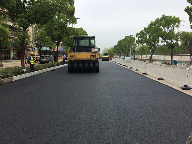 第一段道路機(jī)動(dòng)車道瀝青調(diào)平層及下面層攤鋪完成,全幅16米,長(zhǎng)1500米,共24000平方米。第二段道路兩側(cè)慢車道瀝青下面層攤鋪完成,寬5米,長(zhǎng)800米,共8000平方米。攤鋪道路進(jìn)行全封閉施工,項(xiàng)目部提前策劃變道交通方案,并向沿街商鋪及小區(qū)、車輛發(fā)放《道路施工臨時(shí)交通方案變更告知書》,以便周邊居民及時(shí)了解路況,安排好出行路線。