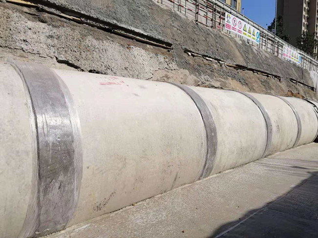 在龍脊河西側(cè)還有一條南側(cè)人行道緊貼殷陳小學(xué)北側(cè)院墻,且學(xué)校院墻沒(méi)有基礎(chǔ),這就為人行道上污水施工造成了很大的困難。污水溝挖深3.5米,挖深較深,不做支護(hù)學(xué)校院墻很有可能傾斜或者倒塌,項(xiàng)目部在施工前采取鋼板樁支護(hù)有效的解決了這一問(wèn)題。南側(cè)慢車道是2.2*1.5米的現(xiàn)澆混凝土雨水溝內(nèi)接DN1800的雨水管,挖深距地面6米,下口寬4米,上口寬9米 ,“北邊建大管廊,南邊還附贈(zèng)一個(gè)小管廊”,項(xiàng)目部青工說(shuō)。雨水溝放坡會(huì)影響南側(cè)快車道路床施工 ,為保證快車道路床按期完成,項(xiàng)目部人員日夜不斷點(diǎn)施工,保證雨水溝進(jìn)度和回填質(zhì)量的同時(shí),在規(guī)定時(shí)間內(nèi)完成南側(cè)雨水管線施工。